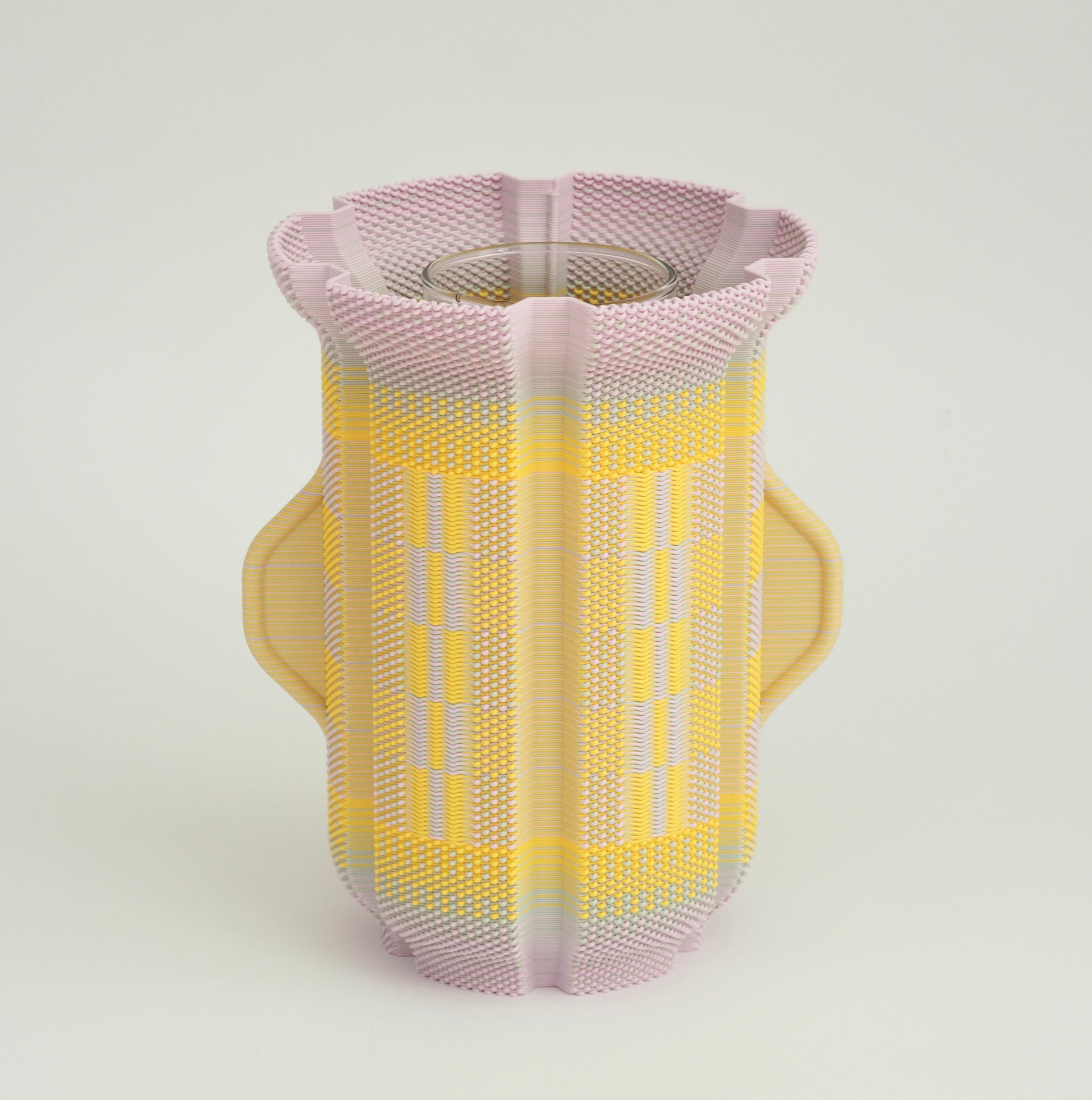 3d printed using an original technique of weaving, from PLA - a compostable bioplastic. This vase was manufactured in Warsaw